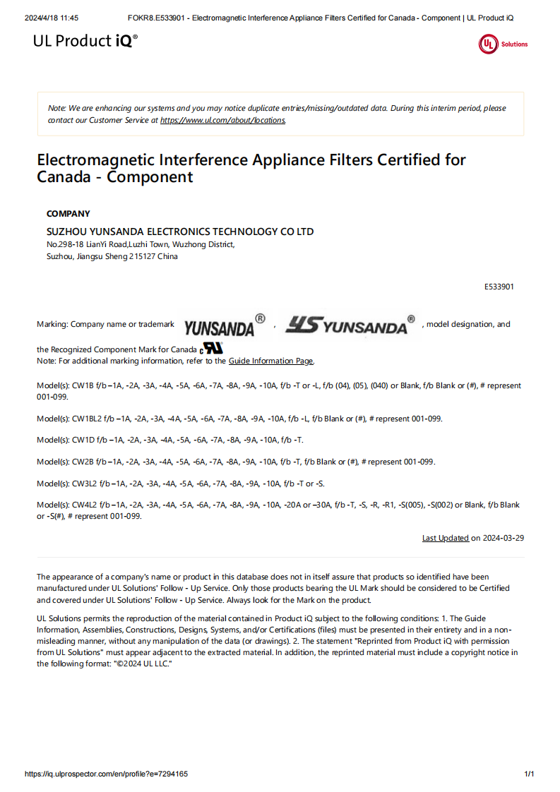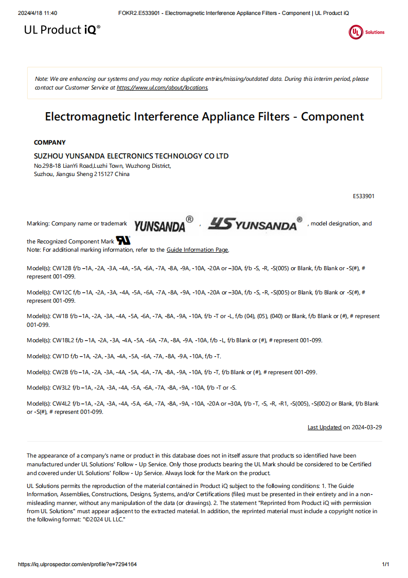 蘇州源勝達電子科技有限公司成立于2008年,旗下品牌有:YS YUNSANDA、YUNSANDA。公司總部位于中國江蘇省蘇州市,YS YUNANDA品牌濾波器一直堅持"恪守信譽、以人為本"的經營理念,"科技創新、質量可靠"的管理信念,在國內外打下堅實的基礎,成為中國知名品牌濾波器制造商。